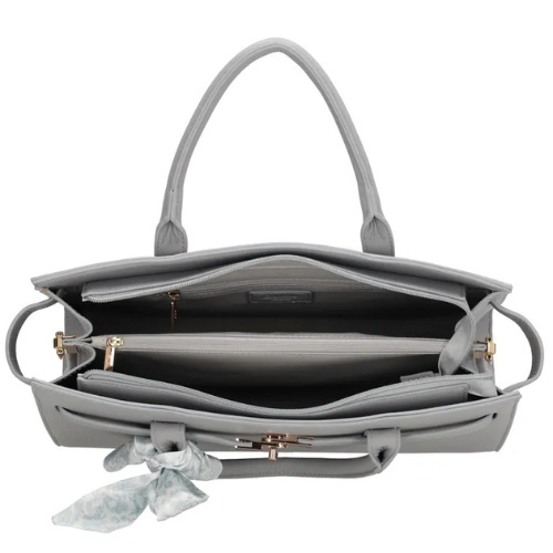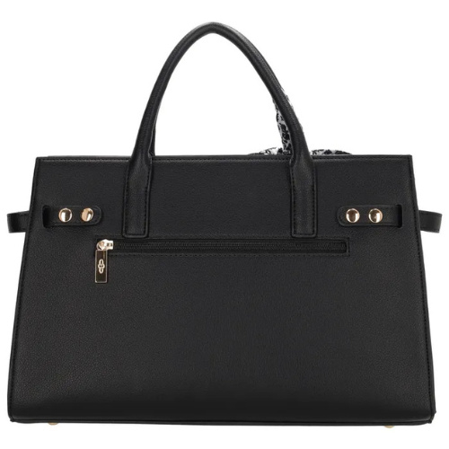 Op de voorkant zit een leuk detail met een gespsluiting, en een speels sjaaltje maakt de tas helemaal af. Voor extra draagcomfort wordt de tas geleverd met een verstelbare en afneembare schouderband, zodat je hem ook crossbody kunt dragen.