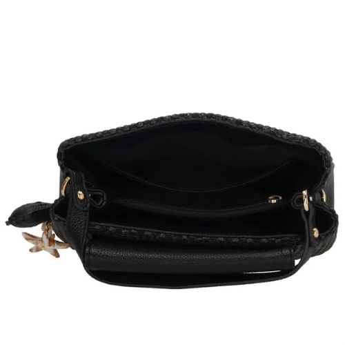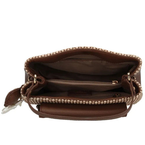 Binnenin is de handtas praktisch ingedeeld met een telefoonvak, een ritsvak en een handig tussen ritsvak zodat je je spullen overzichtelijk kunt opbergen. De leuke bag charm geeft de tas een speelse finishing touch en maakt het geheel helemaal af.